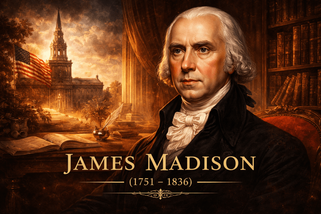 Born on March 16, 1751, James Madison would become one of the central architects of the political language of the United States. Often called the “Father of the Constitution,” Madison played a decisive role in drafting the United States Constitution and was a principal author of the influential essays collectively known as The Federalist Papers. Through these writings, Madison helped establish a lasting model of analytical political prose in English, combining philosophical reasoning, legal precision, and persuasive rhetoric that continues to shape political writing and constitutional debate.